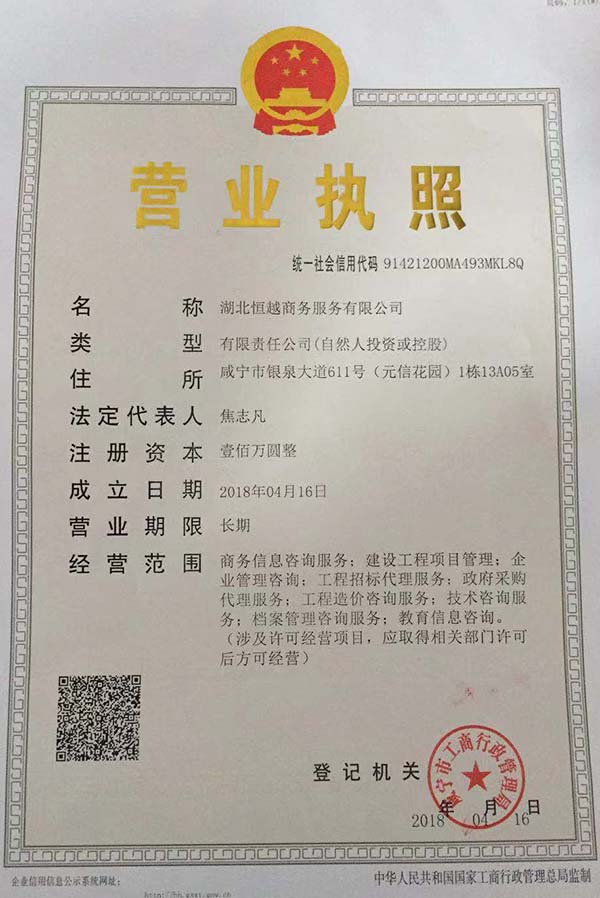 湖北恒越商務(wù)服務(wù)有限公司是成立于湖北省咸寧市的專業(yè)工程咨詢公司。公司立足當前、穩(wěn)步發(fā)展,公司具體經(jīng)營業(yè)務(wù)范圍概述如下—— 工程招標代理 政府采購代理 商務(wù)信息咨詢 工程項目管理 企業(yè)管理咨詢 工程造價咨詢 技術(shù)咨詢服務(wù) 檔案管理服務(wù) 教育信息咨詢 公司現(xiàn)有一批高素質(zhì)的精英團隊,匯集了多名學識高、能力強、經(jīng)驗豐富的中高級技術(shù)及商務(wù)管理型專業(yè)人才。 公司始終堅持“精誠服務(wù),誠實守信,以人為本,業(yè)精于勤”的管理理念,提倡以市場為導向,以為客戶提供全過程、高水平、深層次的招標采購代理服務(wù)等商務(wù)咨詢服務(wù)為宗旨,積極滿足廣大客戶的各種專業(yè)需求,為社會做出更多的貢獻。 公司秉承“開拓創(chuàng)新、信譽第一、質(zhì)量為本、打造一流”的執(zhí)業(yè)理念,我們始終堅持以領(lǐng)先行業(yè)為目標、以品牌為主線、以文化為核心、以人才為根本、以科技為動力,不斷優(yōu)化管理、提升效益、增強企業(yè)核心競爭力,力爭將公司打造成湖北省最好的商務(wù)咨詢服務(wù)類企業(yè)之一。